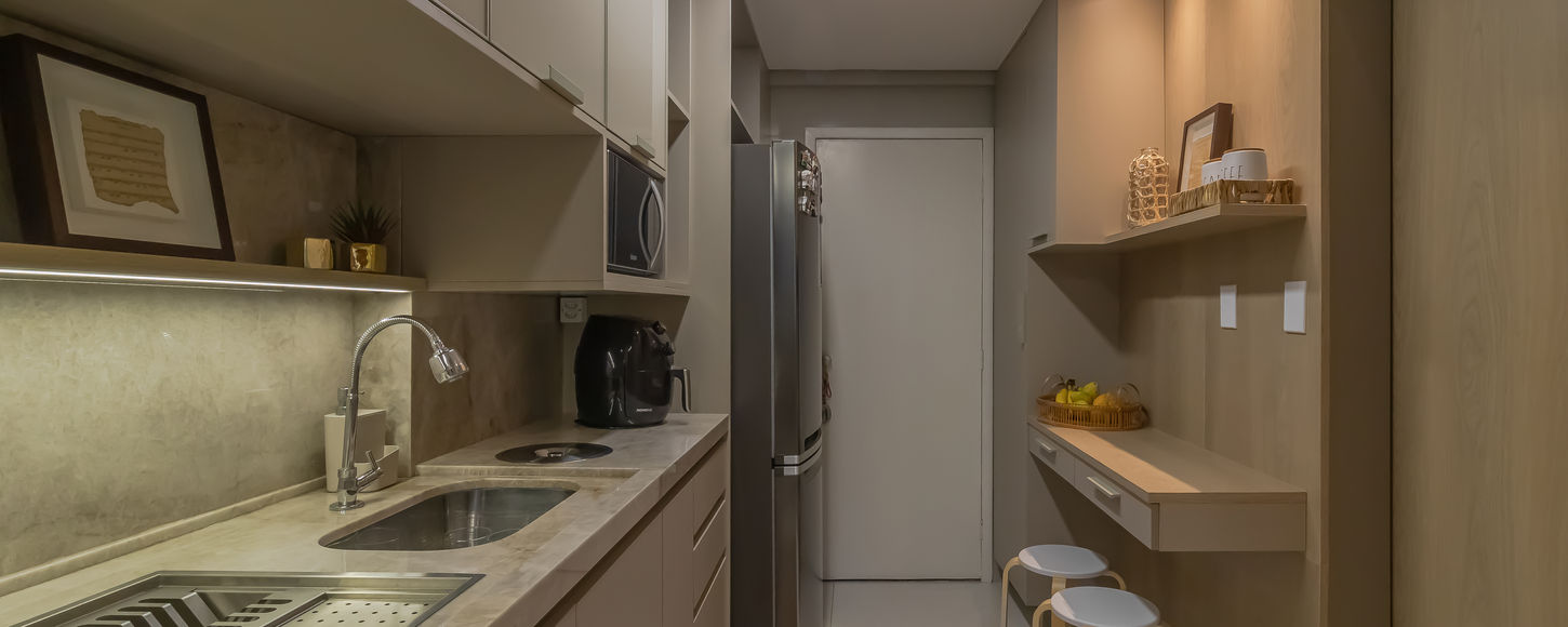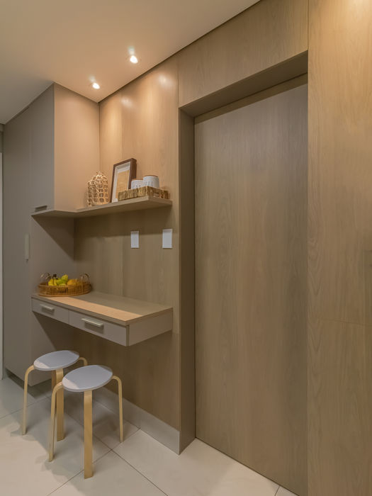 O Apto RR foi pensado para refletir equilíbrio e bem-estar em cada detalhe. A paleta neutra amplia a sensação de leveza, enquanto os toques de cor e as obras de arte trazem personalidade e calor ao espaço. A marcenaria planejada e a iluminação realçam a elegância do projeto, criando um lar contemporâneo que une estética e conforto em perfeita sintonia.
